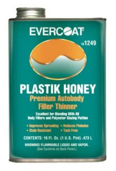 Plastik Honey is an autobody filler thinner formulated to thin and enhance all fillers, including the premium fillers and polyester glazing putties. It can be added to the complete line of Evercoat MetalWorks products, as well as, all competitors fillers and putties. Add a small quantity of Plastik Honey to the filler (prior to adding hardener) and continue to increase the amount until desired smoothness is achieved.