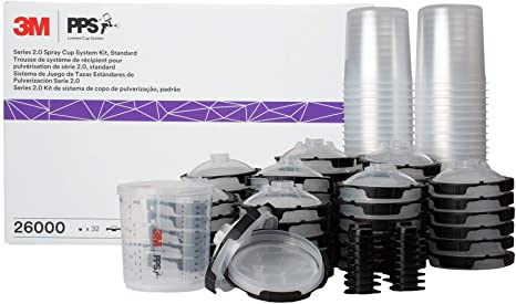 3M™ PPS™ Series 2.0 Spray Cup System is our next generation, highest performing disposable spray cup system for mixing/measuring, filtering, spraying in any direction (360° spray rotation) and protecting coatings not in use. Each lid and liner kit contains 50 disposable lids with integrated collars and full diameter filters, 50 disposable liners, 1 reusable hard cup and 32 sealing plugs.