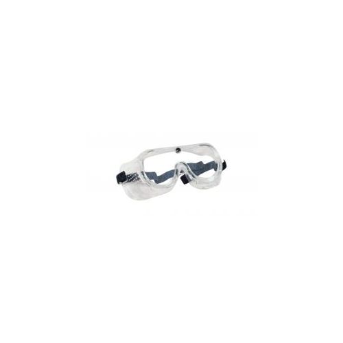 Lightweight, soft vinyl frame fits over prescription glasses. Secure with flexible, adjustable strap. One size fits all.