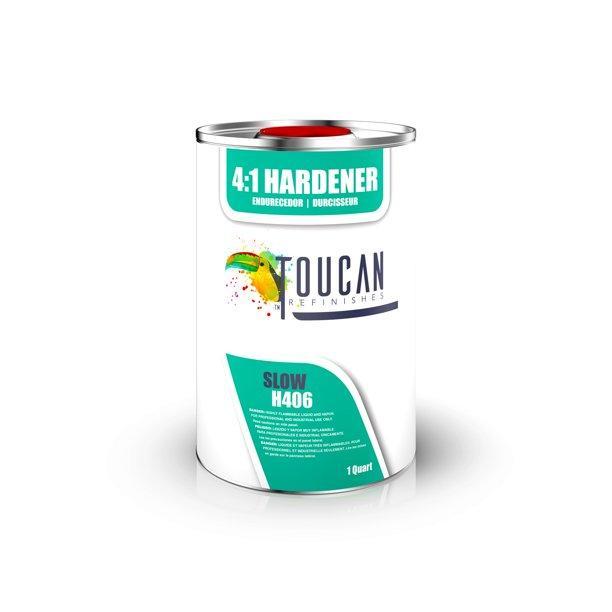 One quart of slow hardener will mix with 1 gallon of our Toucan C400 clear coat to provide a smooth finish when painting in temperatures greater than 80F, allowing you time to spray your project completely before any dry spray can affect the finish.