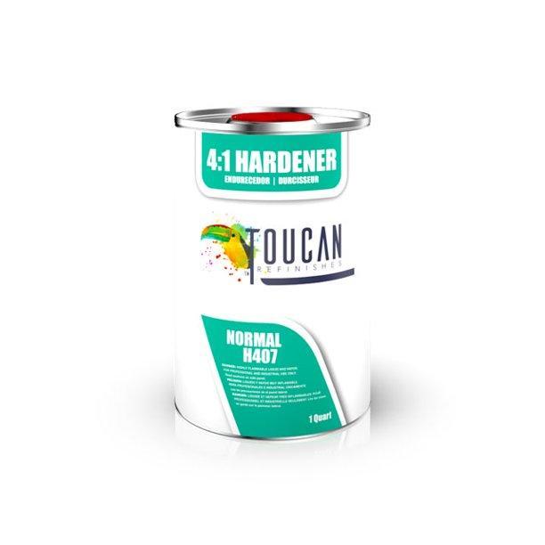 One quart of standard hardener will mix with 1 gallon of our Toucan C400 clear coat to provide a smooth finish when painting in temperatures close to the recommended 70F.